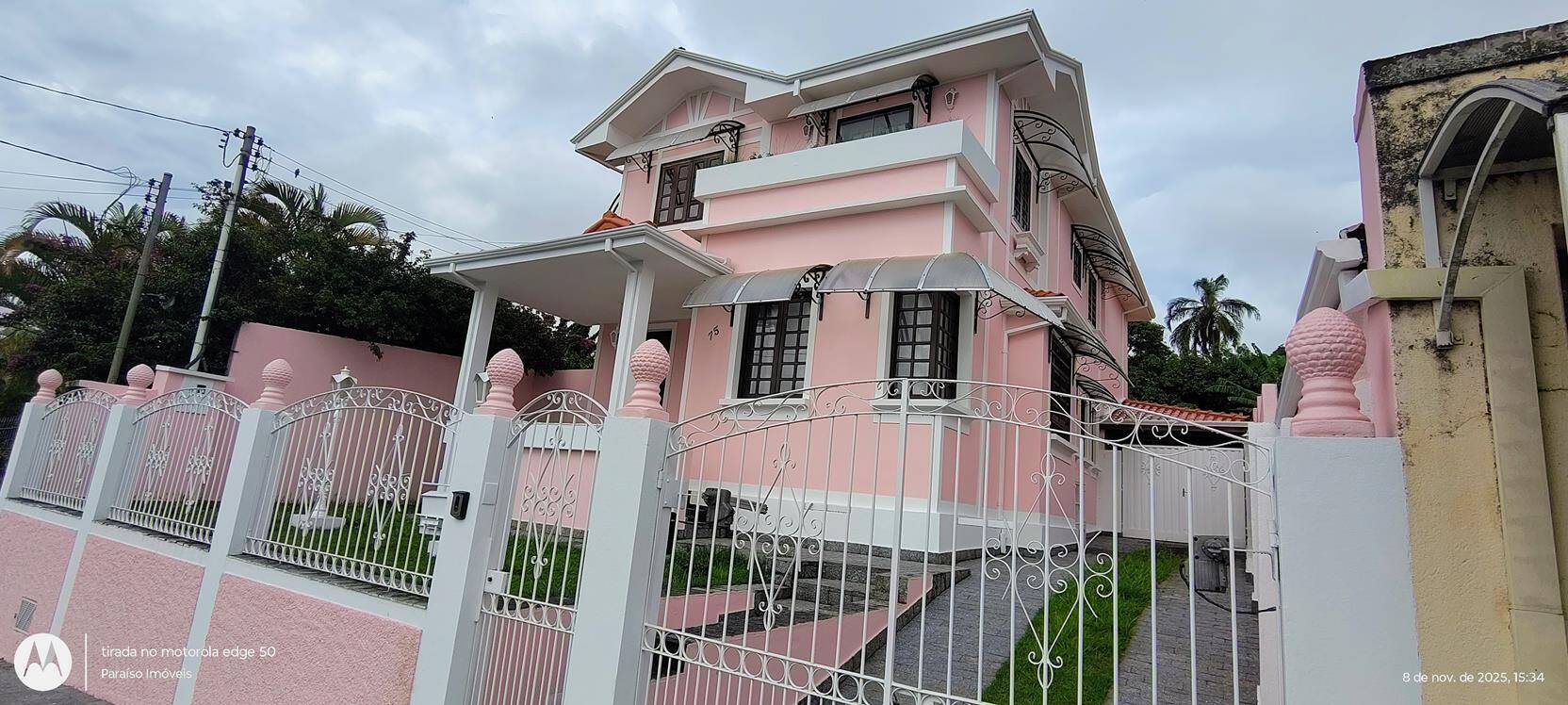 Descubra o refúgio perfeito nesta charmosa casa de arquitetura única, que combina elegância clássica com toques de modernidade e um visual encantador em rosa e branco. Totalmente isolada e recuada, a propriedade oferece privacidade e tranquilidade, emoldurada por um belíssimo jardim frontal que convida ao bem-estar desde a entrada.